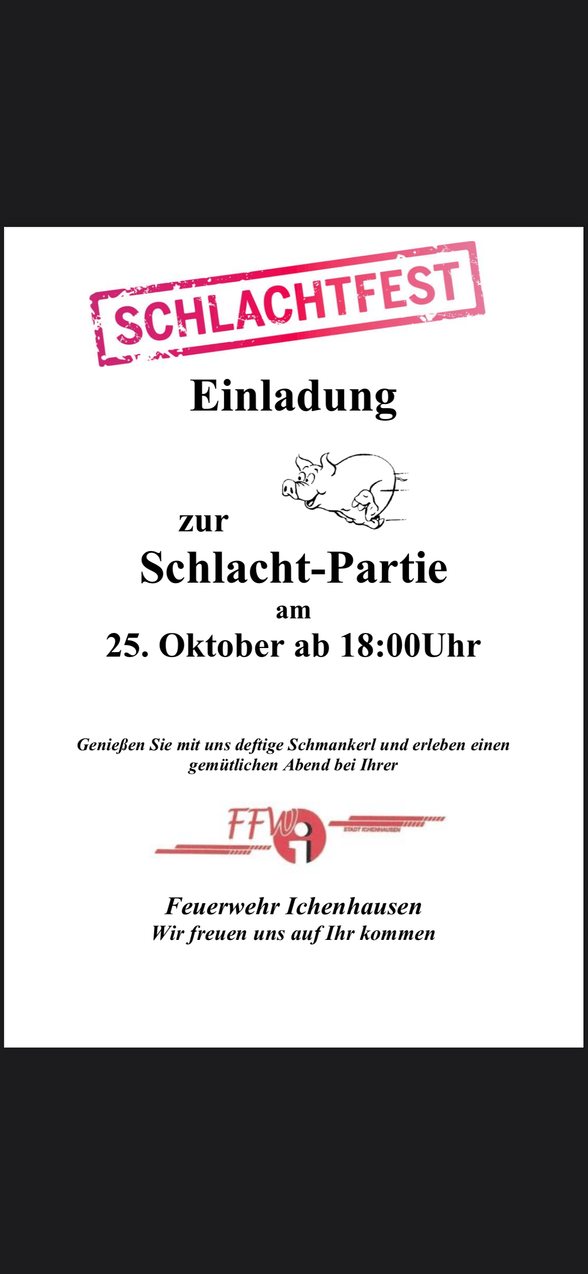 Die Freiwillige Feuerwehr Ichenhausen lädt herzlich zum traditionellen Schlachtfest ein!